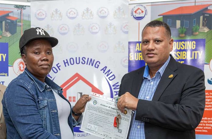 The keys and electrical certificates were officially handed over on Wednesday, during a brief ceremony, by Minister of Housing and Water, Collin Croal, at the Ministry’s headquarters. Also present were Central Housing and Planning Authority (CH&PA) Director of Operations, Mrs. Denise King-Tudor, and Deputy Director of Community Development, Mrs. Donell Bess-Bascom.